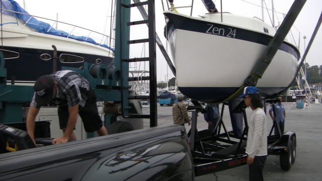 Zen 24 has been shipped to Red Wood city in Bay Aria this morning on a custom built trailer after successful demonstration sailing in MDR.